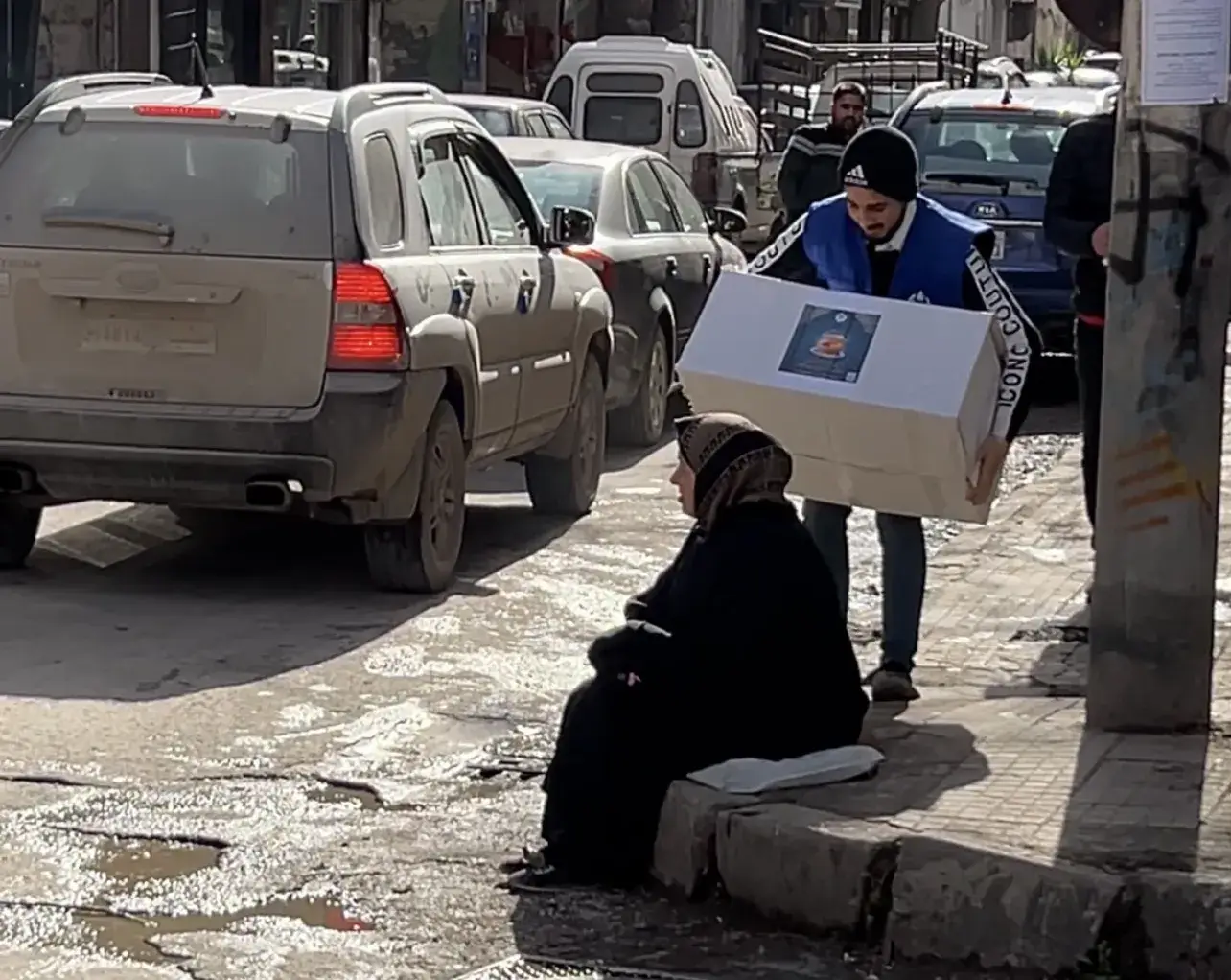 Includes: rice, bulgur or pasta, lentils, sugar, flour, vegetable oil, chickpeas or beans, tea, and essential canned goods depending on availability.