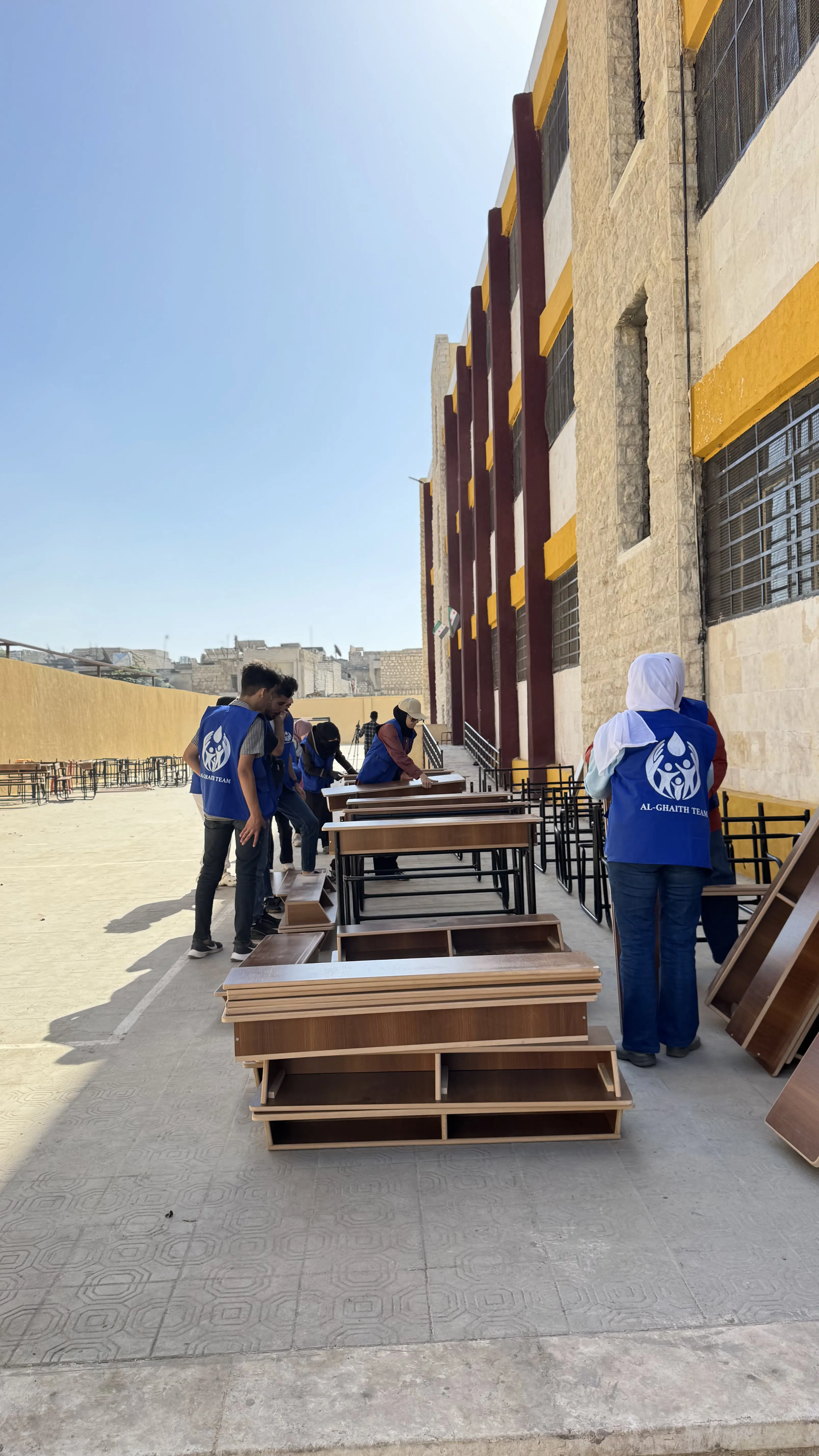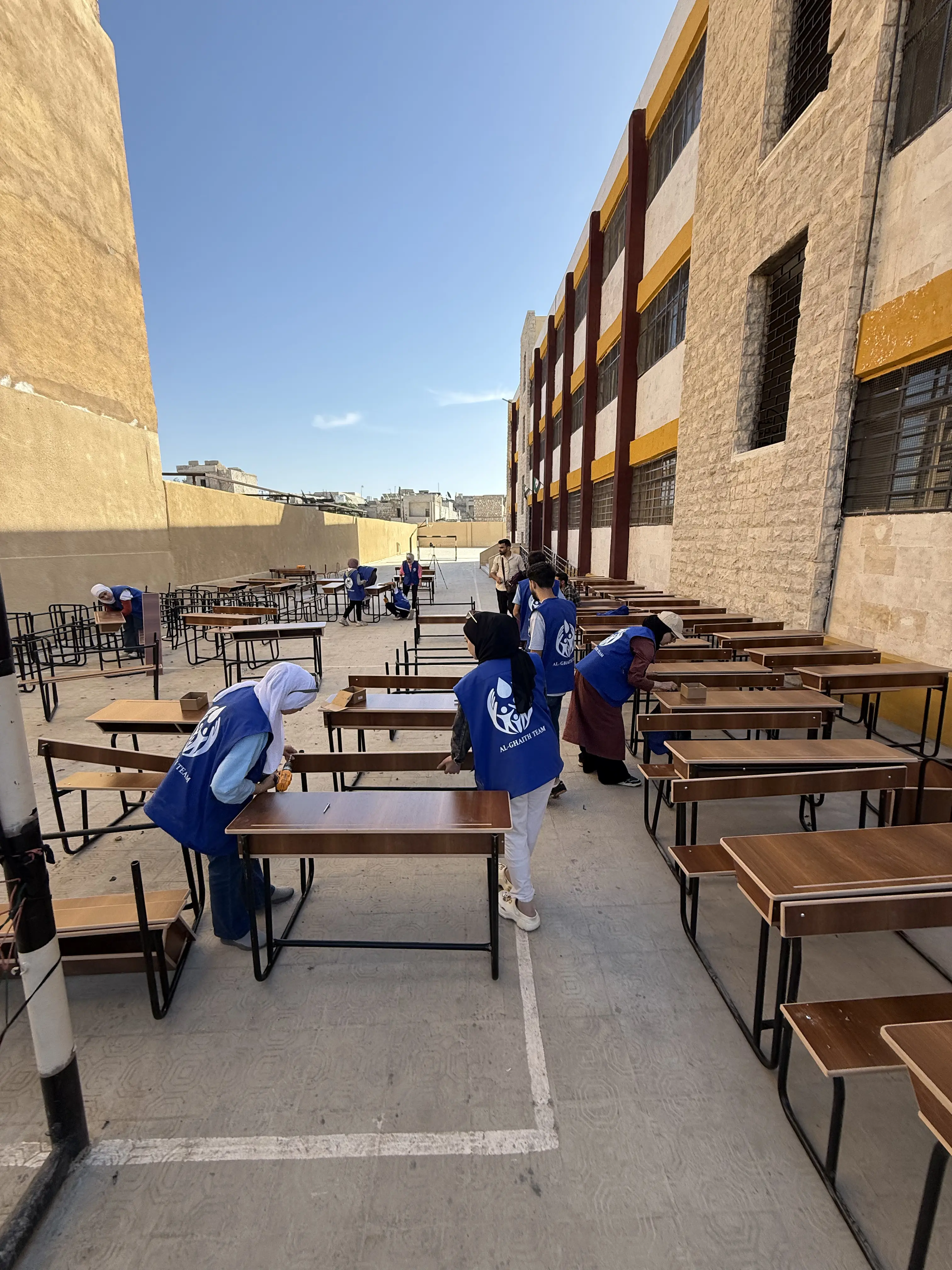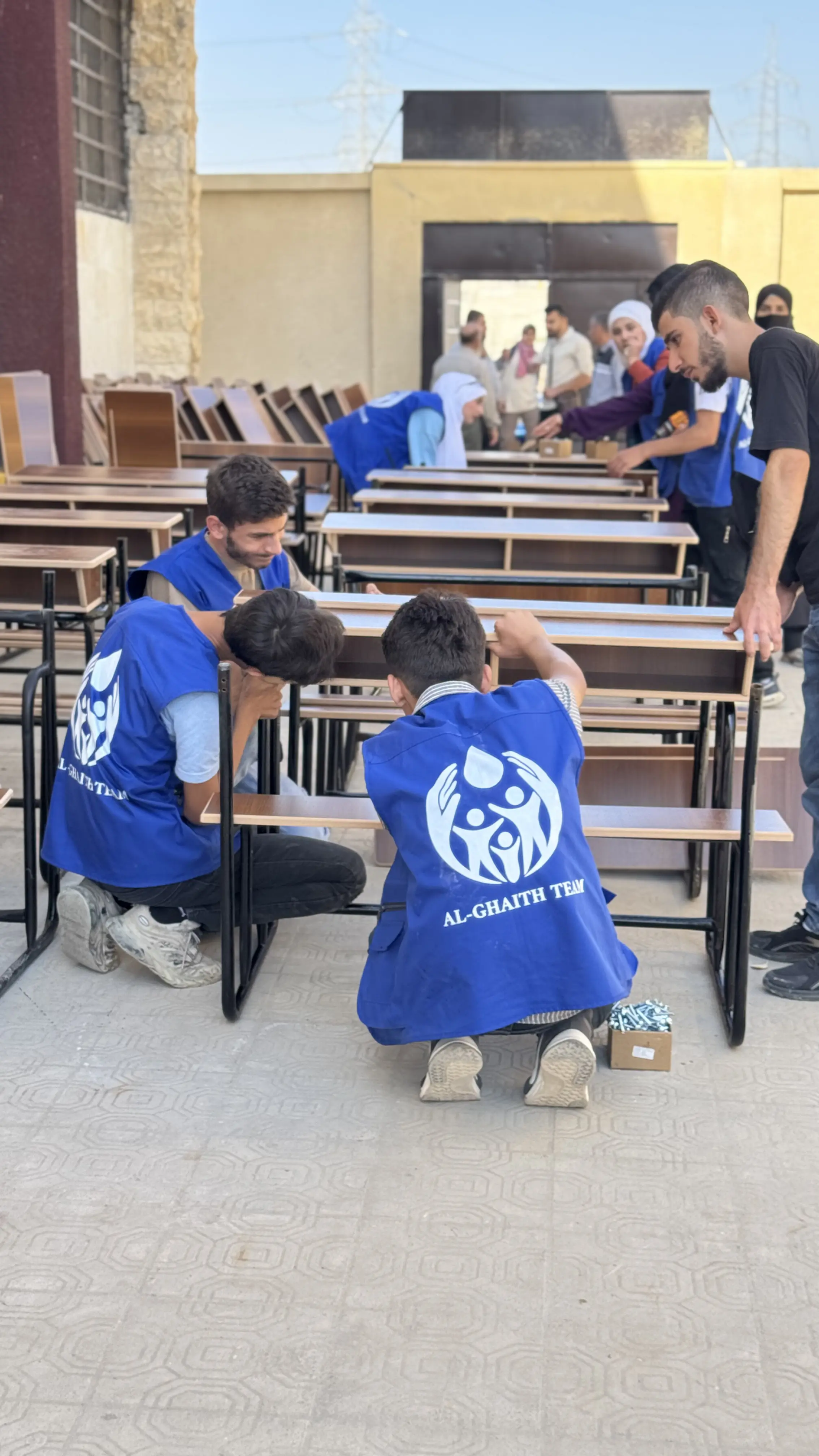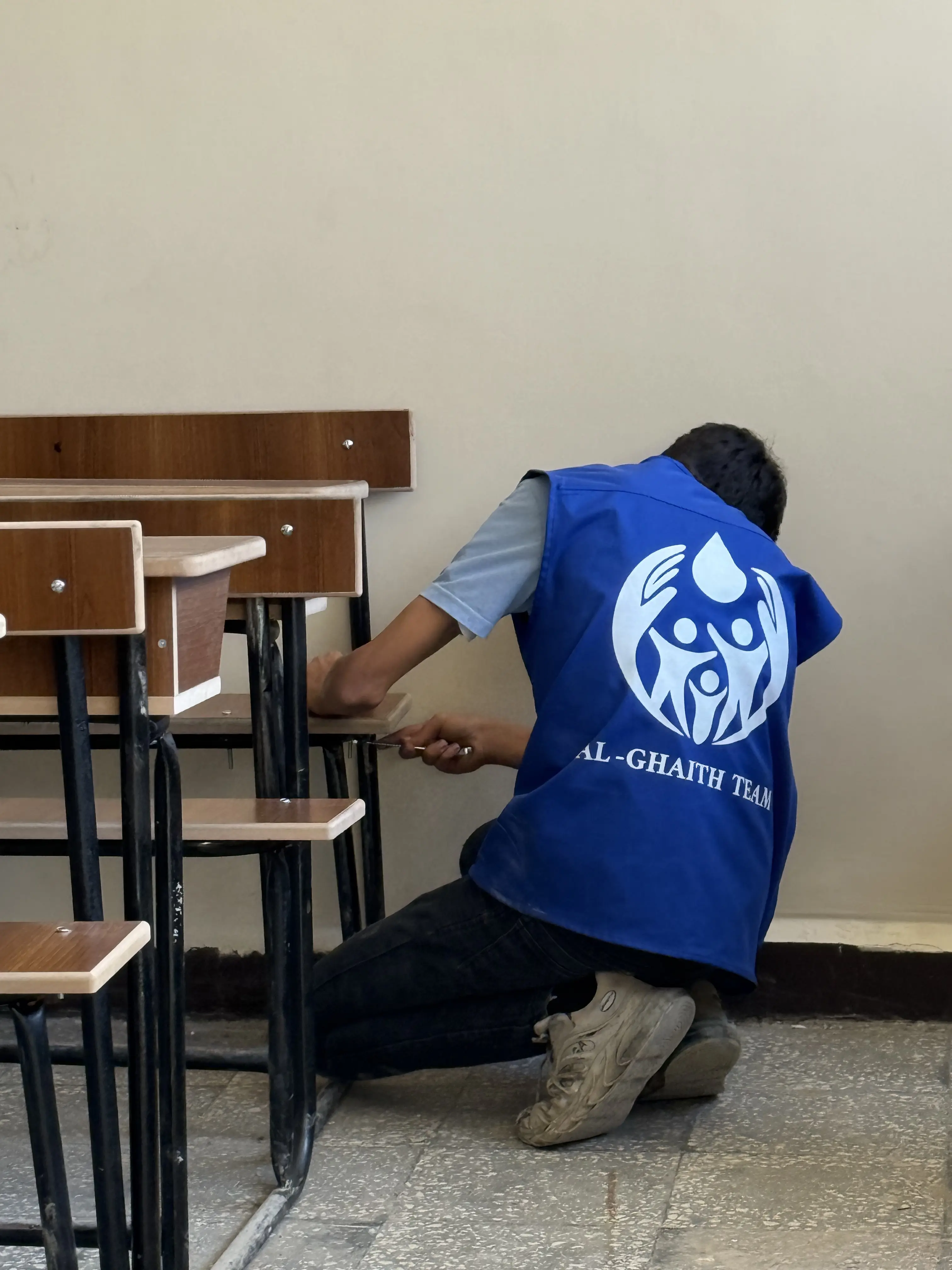 The campaign to install school desks in affected schools was launched with the aim of rehabilitating classrooms that were damaged and lost their essential equipment—particularly student desks.